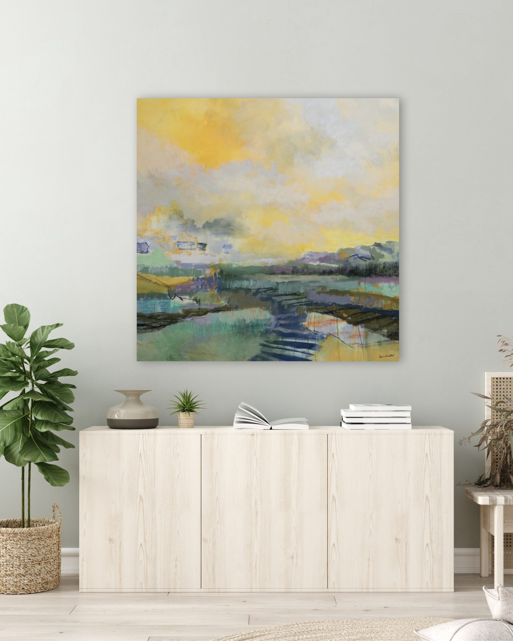 Litet landskap på duk, 20 x 20 cm.